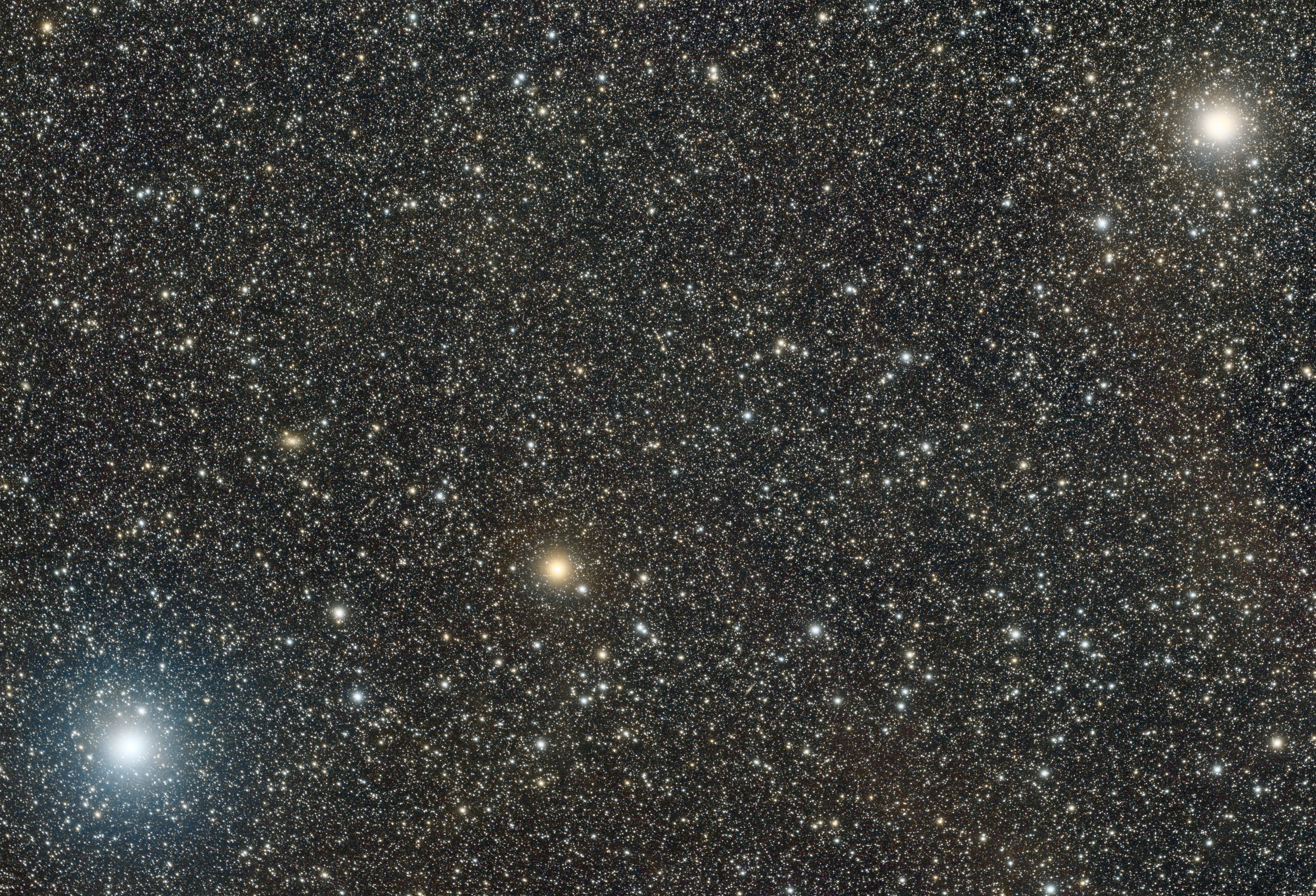 For each star, I took an hour of data; 60 x 60 second exposures with a UV/IR cut filter on a 300mm focal length RedCat 61 and processed it the same way using Siril. This provides reasonably correct star colours and relative brightnesses.